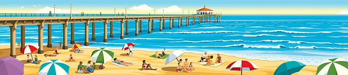 Recently I was asked to do a few new illustrations for another of their stores at Manhattan Beach, California depicting Manhattan Beach over the decades. As per the previous illustrations, because they are vector-based the images were blown up to enormous sizes for large billboards and main picture windows.